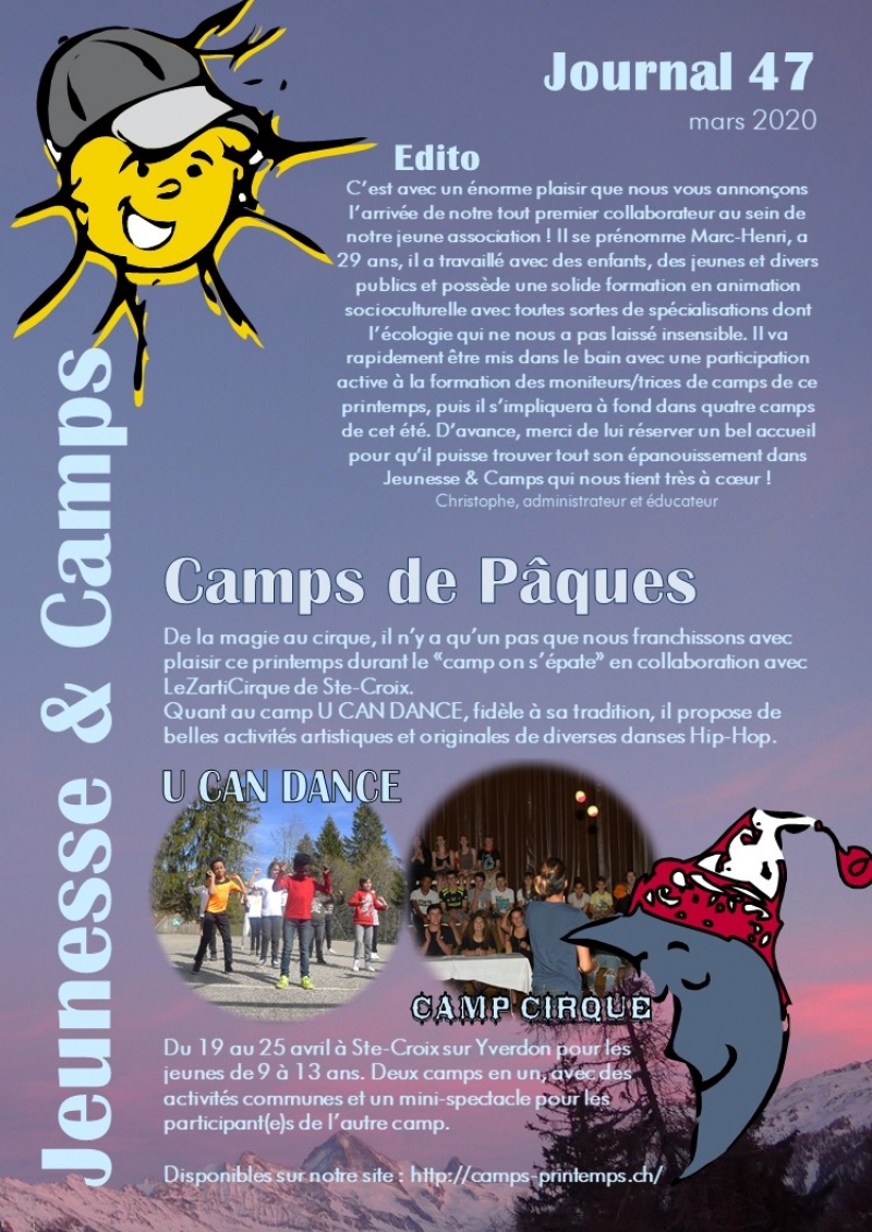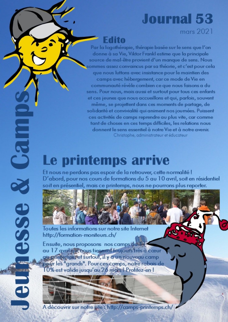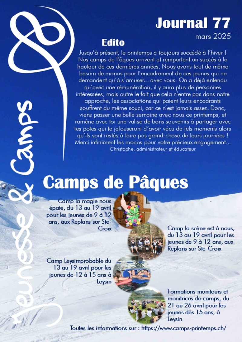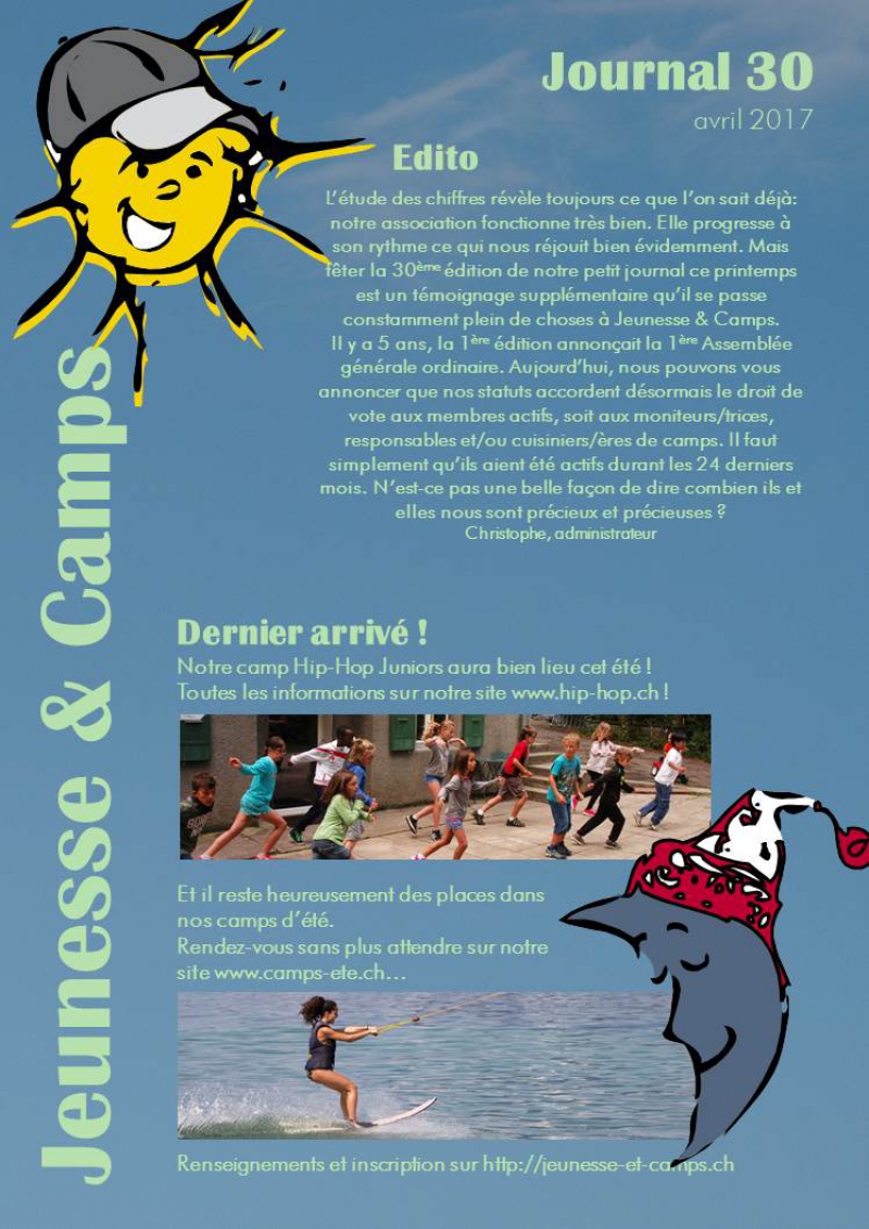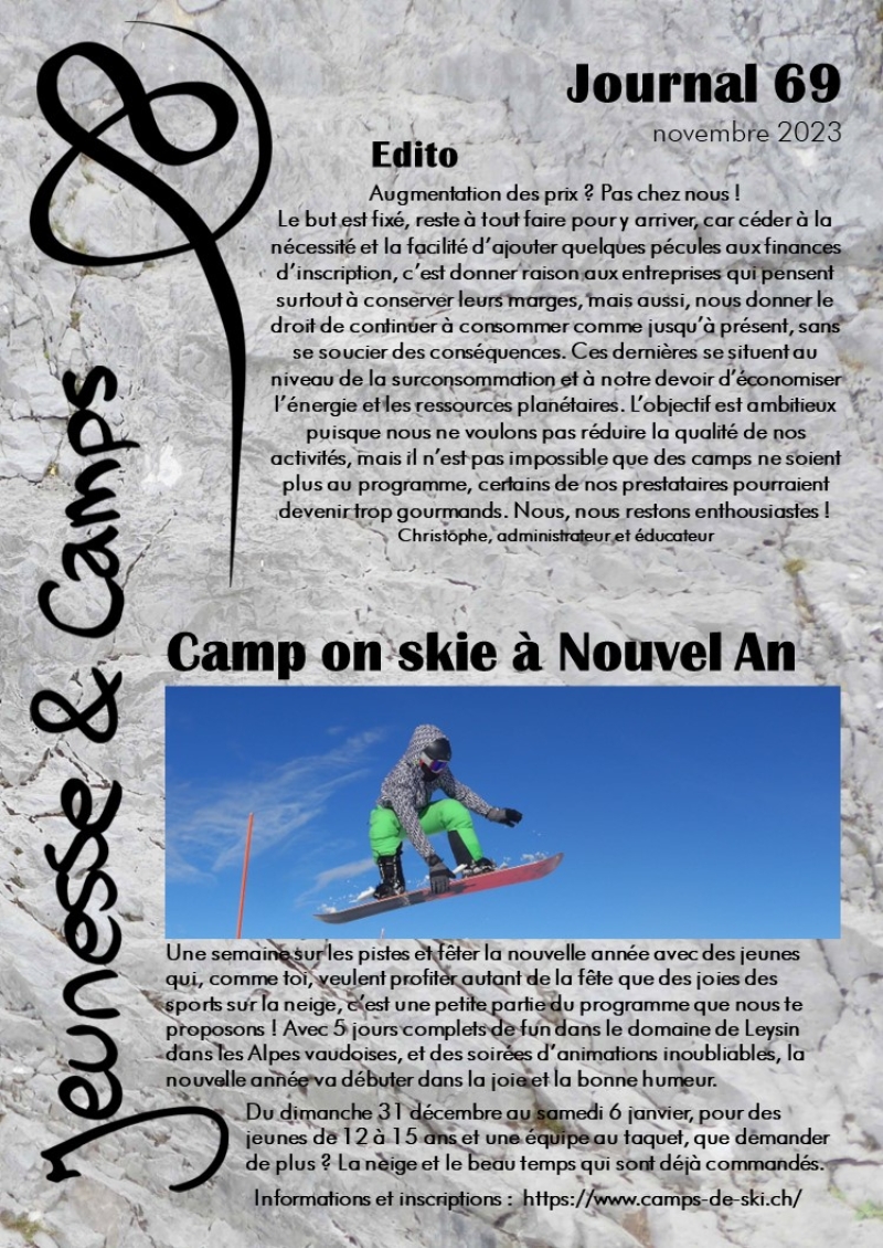 1er journal de Jeunesse et Camps: convocation à l'Assemblée Générale, le camp de ski et de snowboard à Saas Grund et l'annonce des camps d'été