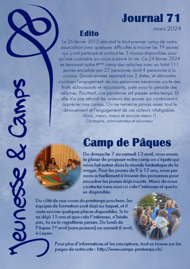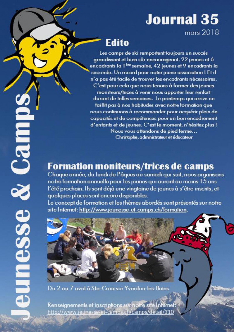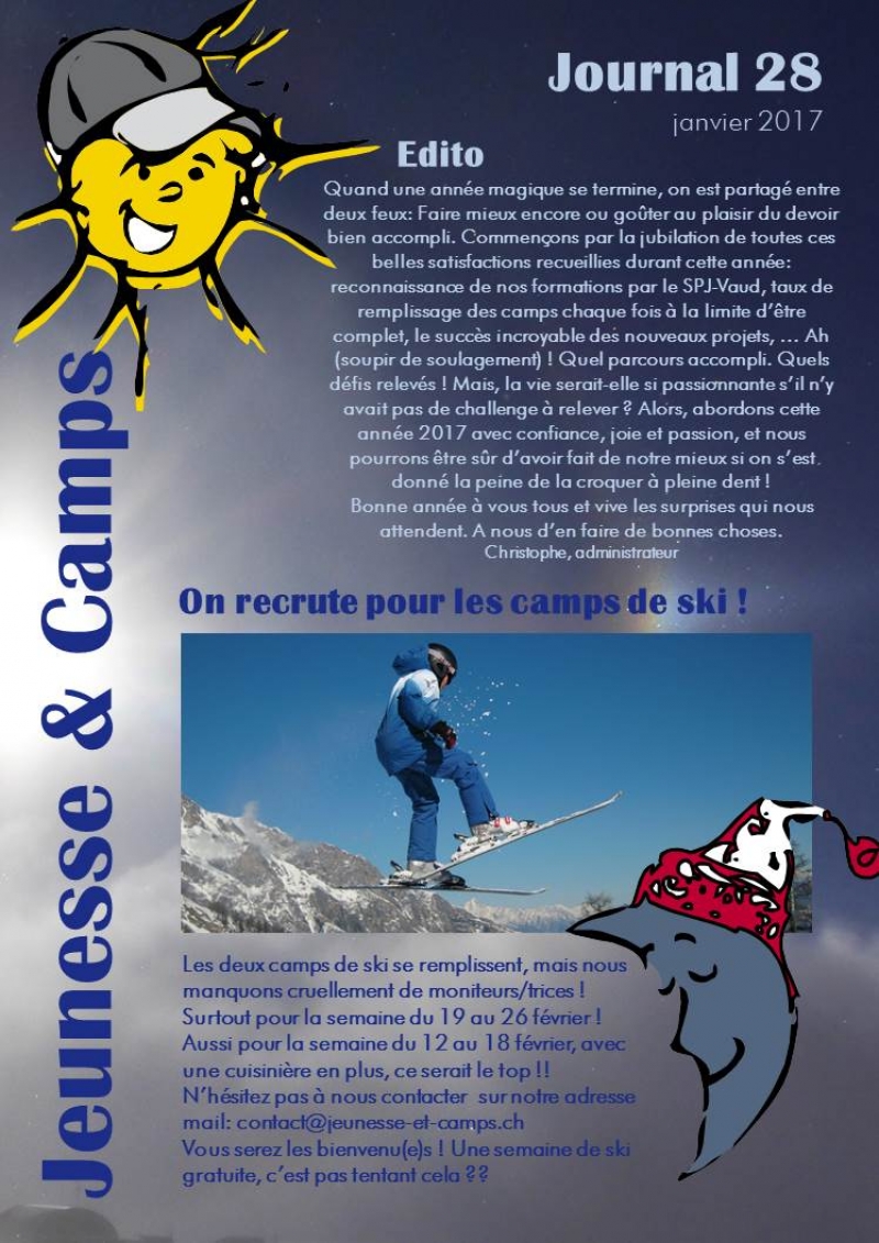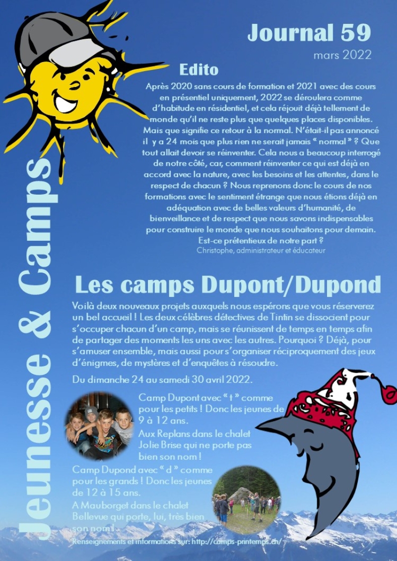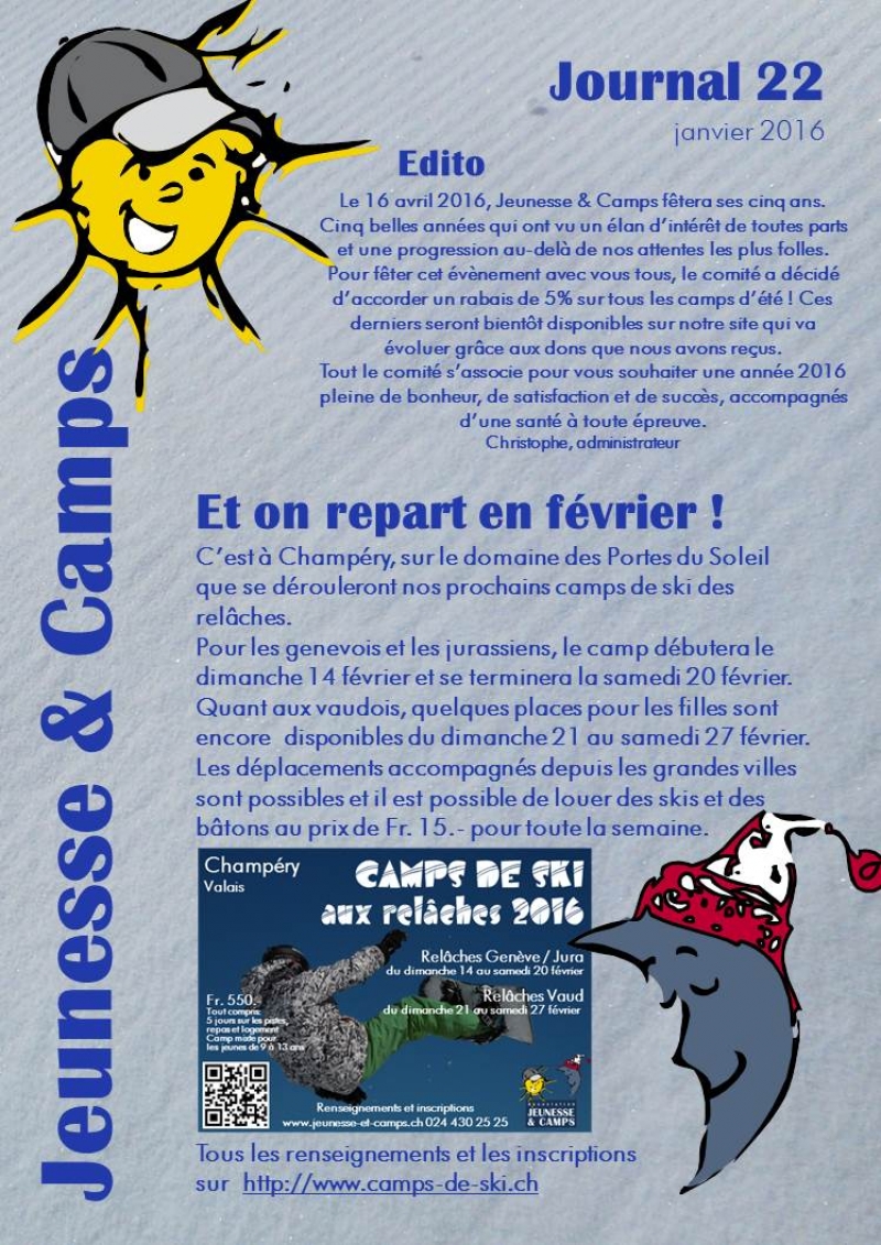 1er journal de Jeunesse et Camps: convocation à l'Assemblée Générale, le camp de ski et de snowboard à Saas Grund et l'annonce des camps d'été