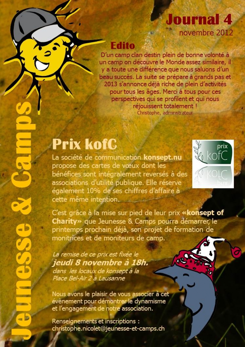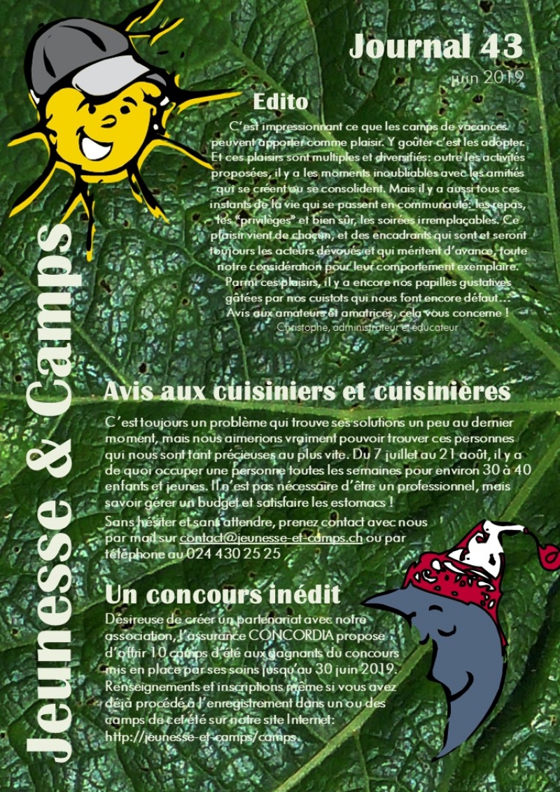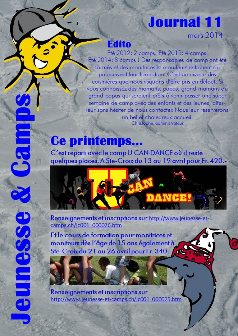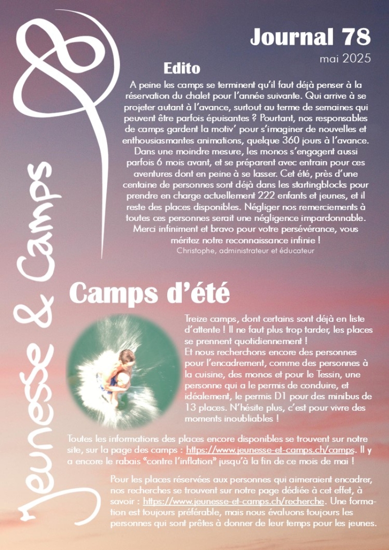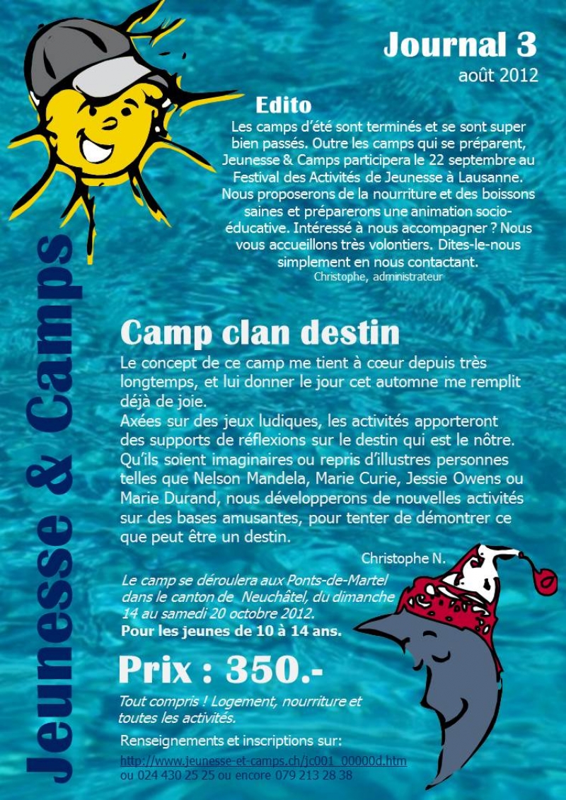 1er journal de Jeunesse et Camps: convocation à l'Assemblée Générale, le camp de ski et de snowboard à Saas Grund et l'annonce des camps d'été