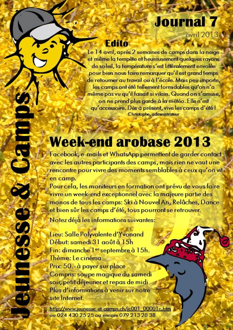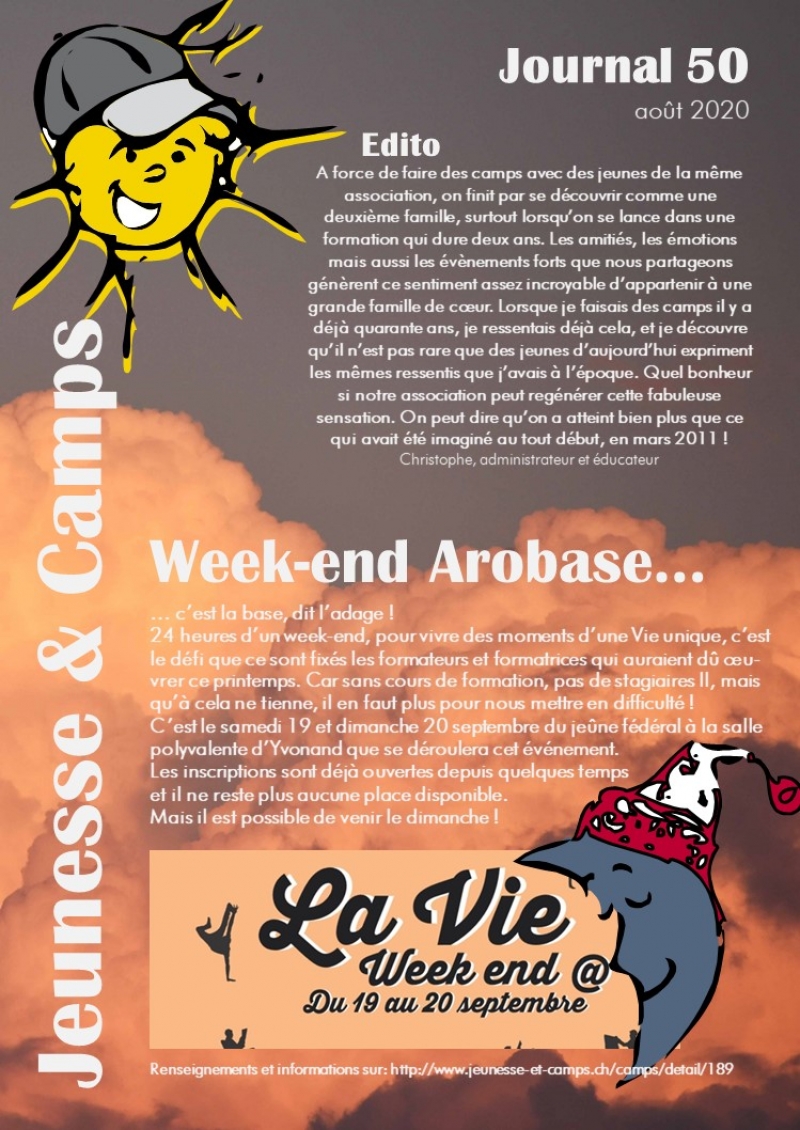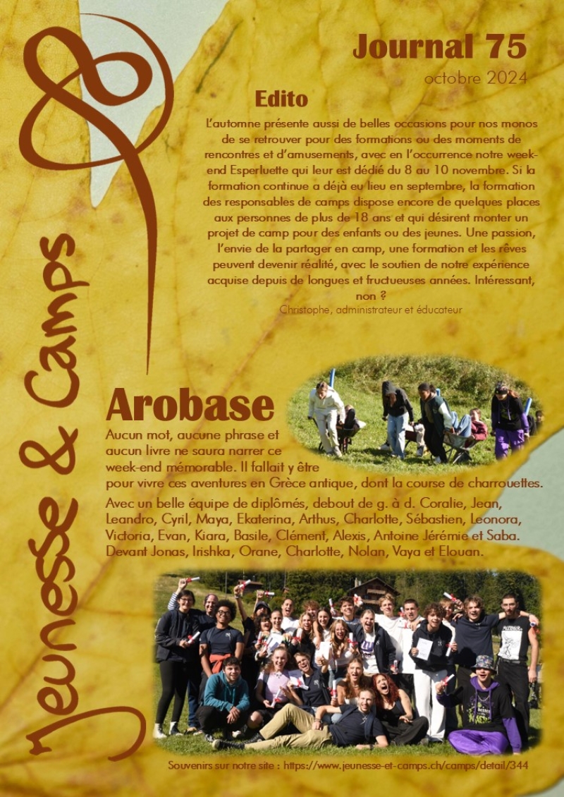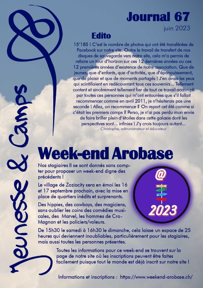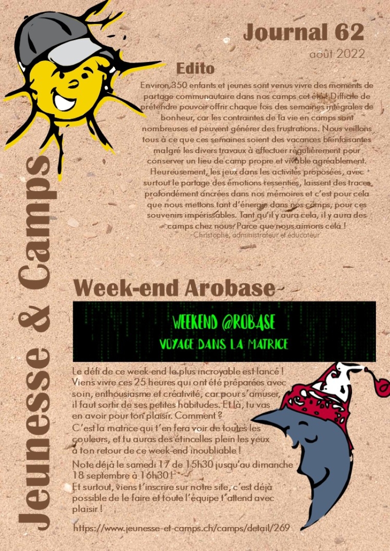 Revue des camps d'été, annonce du week-end Arobase et des camps d'automne